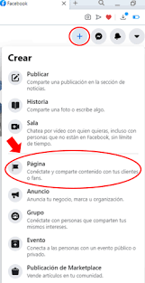 En el lateral izquierdo del panel personal, además de los datos nuestros, hay una opción que es página, una vez que le damos saldrá la opción de crear página.